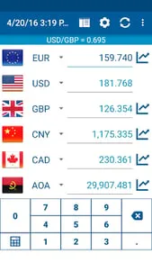 Simple currency converter and exchange rates calculator for up to 15 currencies at once!We've seen it all - various currency converters, exchange rates lists with charts and historic data. But who need all that fancy stuff, when you simply need to find out on holiday how much does that thing cost, right?This app will do exactly what you'd expect of it during the vacation in some country. It's main advantage is that you can choose up to 15 currencies that are visible on mainscreen.Conversion will