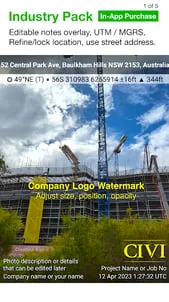 Solocator is a GPS camera for fieldwork or when you need photos for proof. Overlay and stamp photos with location, direction, altitude, date & time taken. With the Industry Pack (In-App Purchase), capture field notes such as project name, photo description, company or username.Solocator is used by many industries, government agencies and professionals across the globe for photo documentation.TAILOR OVERLAY INFORMATION TO YOUR NEEDSSelect the information you need to capture & stamp on your photos:+ GPS position (Latitude & Longitude in various formats) ± Accuracy+ UTM/MGRS coordinate formats (Industry Pack)+ Compass direction–bearing+ Altitude (Metric & Imperial units)+ Tilt & Roll angles+ Crosshair+ Local date & time based on your GPS location+ Local time zone+ UTC time+ Show compass+ Street address (Industry Pack)+ Show cardinal direction in Building mode, e.g. North elevation of a building face.+ Option to use abbreviations or Unicode characters for direction, position and altitude.C