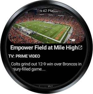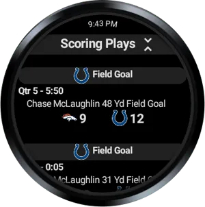Full feature wear os app that contains:NFL scoreboardTile feature to quickly glance at updated scoresGame details - including current drive, scoring plays, and statsSchedules - all NFL teams with TV infoStandings - including playoff indicatorsTeam news - see specific news for your team as well as NFLTV schedules - Monday, Sunday and Thursday night footballGame and Player stats - For your fantasy sports teams..much more. This is a 100% wear only app. It's designed for wear and does not require a phone. Looks great on both round and square watches.Lightweight and NO ads.You buy it once and you own it. No annoying ads and no subscriptions.I built this sports app for myself originally and I welcome feed back and recommendations.All trademarks, logos and brand names are the property of their respective owners. All company, product and service names used in this app are for identification purposes only. Use of these names, trademarks and brands does not imply endorsement.