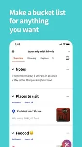 The best app to plan a trip, Wanderlog is the easiest-to-use, completely free travel app for planning every kind of trip, including road trips and group travel! Create a trip itinerary, organize flight, hotel, and car reservations, view places to visit on a map, and collaborate with friends. After your trip, share a travel guide to inspire other travelers.✈️🛏️ See flights, hotels, and attractions in one place (like TripIt and Tripcase)🗺️ View road trip plans on a travel map & map your route (like Roadtrippers)🖇️ Rearrange the order of places easily by drag-and-drop📍 Planning a road trip? Add unlimited stops for free, optimize your route, view times & distances between places, and export places to Google Maps🧑🏽🤝🧑🏽 Planning group travel? Invite friends and collaborate in real-time just (like Google Docs)🧾 Automatically import reservations by forwarding emails or connecting your Gmail🏛️ Add things to do from top guides with 1 click (like Tripadvisor and Google Trips/Google Travel)📃 Access your trip plans offline (Pro)📝 Add notes and links to your stops📱 Have your trip plans automatically sync across devices💵 Set budgets, track expenses, and split bills with a group-------🗺️ SEE IT ON A MAPEvery time you add a place to visit, it’s immediately pinned on your Google Maps-based travel map. No need to pull up different travel apps and websites to organize vacation plans - you can do it all in the Wanderlog trip planner app! Plus, if you’re visiting points in order, lines will connect the different pins on the map so you can see your route (perfect for road trips!). You can also export all your places to Google Maps too.🗓️ STORE PLANS OFFLINEAll your holiday plans are automatically stored offline on the Wanderlog travel planner app - especially helpful during a road trip with poor signal and international travel.🚙 GET ON THE ROADLooking for the best road trip planner? Travelers can plan their driving trips and stops with Wanderlog. See your route on a map, or try our route optimizer to automatically rearrange and plan your route to save travel time. See estimated times & distance traveled between places to make sure it all fits, and total time and distance traveled for a given day to make sure you’re not driving your car too long. Plus, you can add unlimited stops along your road trip for free.🧑🏽🤝🧑🏽 COLLABORATE WITH FRIENDSFor group travel planning, add your trip mates with their email address or by sharing a link to the itinerary. Like for Google Docs, everyone can collaborate in real-time. Set permissions and choose whether people can edit or just view your travel plans.🗂️ STAY ORGANIZEDAccess flights, hotels, and attractions in one app. Forward flight and hotel confirmation emails to import them directly into your trip plan, or connect your Gmail to automatically add them. Prefer to keep high-level plans? Make generic lists like ‘Things to do’ and ‘Restaurants’ you want to eat at. Traveling on a tight schedule and want to create a detailed itinerary? Organize your day by adding start (and end) times, perfect for keeping track of tickets and reservations.🌎 GET INSPIRATION & INFORMATIONFor each place, see key info like a description and picture of the place, average user ratings with links to reviews, opening hours, address, website, and phone number. Stay inspired by exploring top travel guides for every city from the web that feature viewpoints, attractions, and restaurants, and from lists from Google Trips and Google Travel, as well as by other Wanderlog users, and add things to do from those guides to your trip plan with 1 click.💵 MANAGE TRIP FINANCESSet a vacation budget for yourself or a group. Take control of your spending and keep track of all expenses. For a group trip, split a bill with other people and easily calculate the cost. Keep a record of who paid for what, how much money everyone owes or is owed, and settle debts between trip mates.